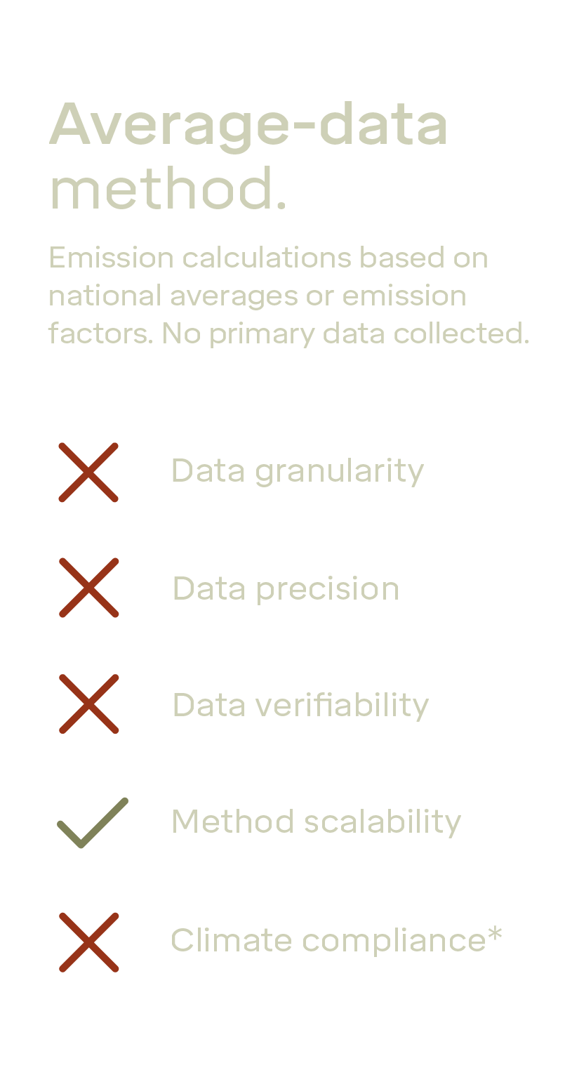 *Climate compliance refers to general compliance with sustainability reporting directives, standards and frameworks requiring supplier-specific primary data. Examples: CSRD, Greenhouse Gas Protocol and Science-Based Targets Initiative.